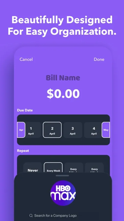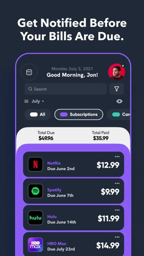 ● Home: See all your upcoming bills in one central place.