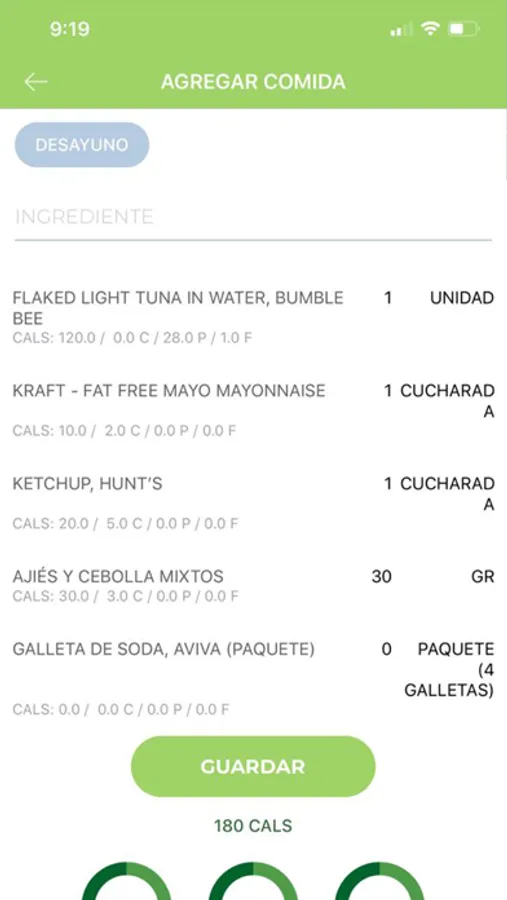 Contar macros nunca había sido tan fácil. Tenemos una amplia base de datos de alimentos (todas las entradas verificadas por nosotros) dónde puedes escoger lo que vas consumiendo en tu día para no excederte ni quedarte por debajo de tus objetivos diarios.