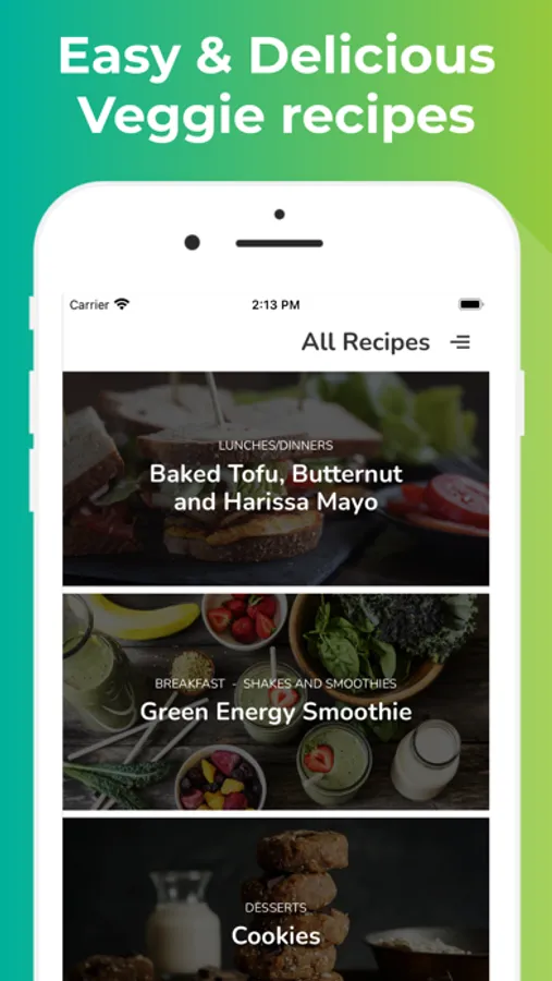Find vegan recipes easily and quickly. Sort by category to facilitate your search.