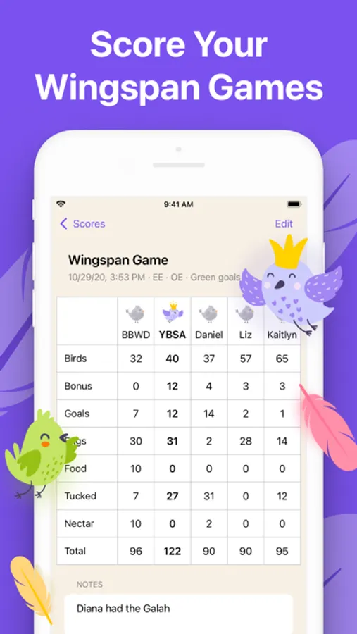 Wingscore is an app that helps you score your Wingspan games!
