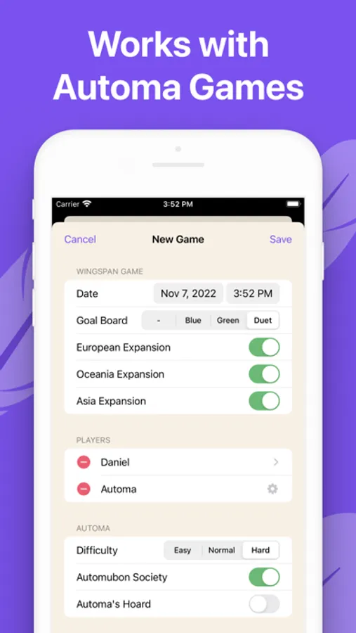 * Quickly score your games of Wingspan (including games with Automa)