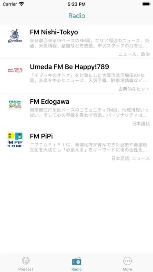 With Radio Japan you can listen to the best online radio stations and follow your favorite shows and podcasts for free. You can choose amongst sports, news, music, comedy and more.