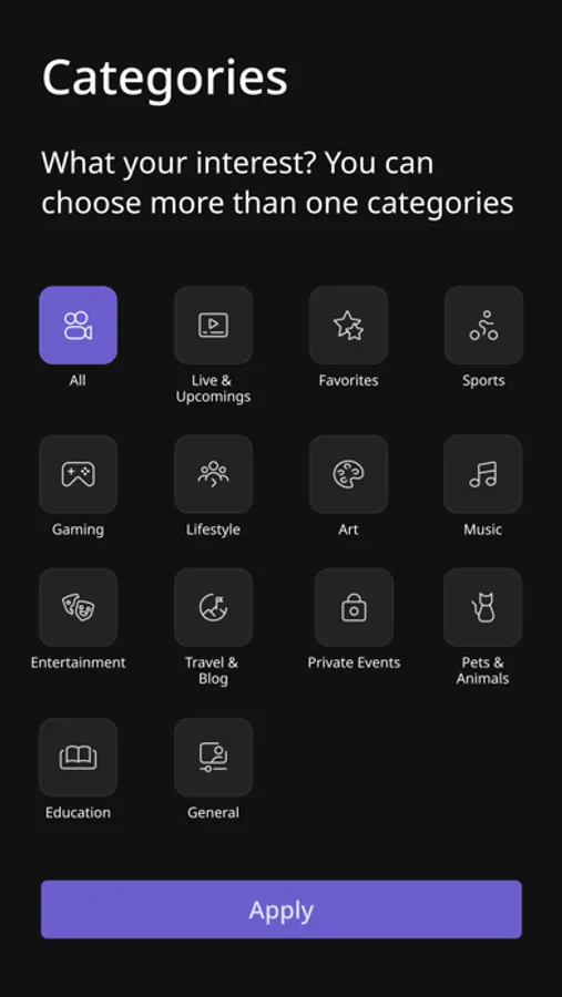 Choose your favorite categories to see interesting videos you only want on your feed.