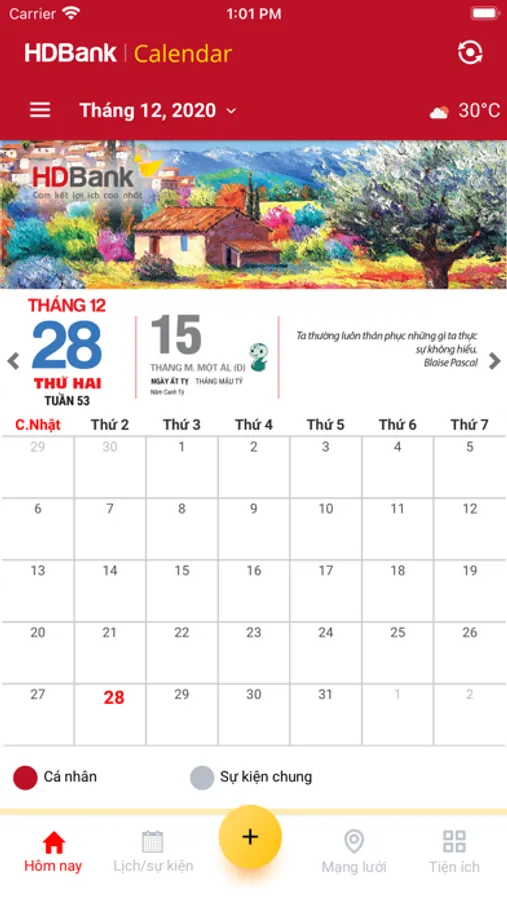 HDBank Calendar is a date-view application with many utilities, making it easy to look up the solar calendar, lunar calendar, good times and zodiacs to bring luck and success in life. In particular, its wallpapers featuring aircrafts, world landscapes will create a sense of relaxation and comfort for users.