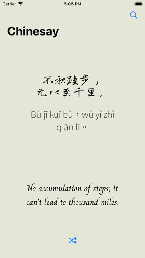 * When you feel down, click on this App! It will give you a positive Chinese saying randomly to cheer you up.