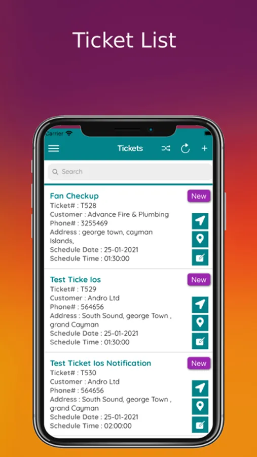 EzyTickets mobile app developed for technician/employees where they can login & see assigned ticket list