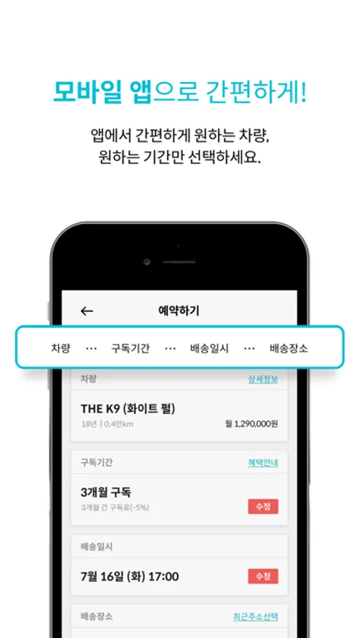 - 원하는 장소와 시간, 차종을 선택하면 차량을 직접 배달해 드립니다.