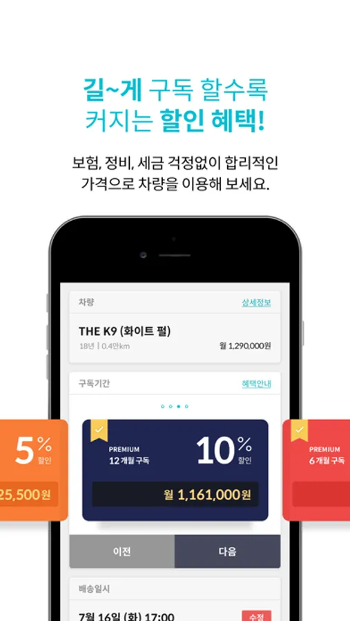 3.월 정액으로 차량 보험, 정비 등 걱정 없이 이용하고 구독 기간이 길수록 할인 혜택까지!