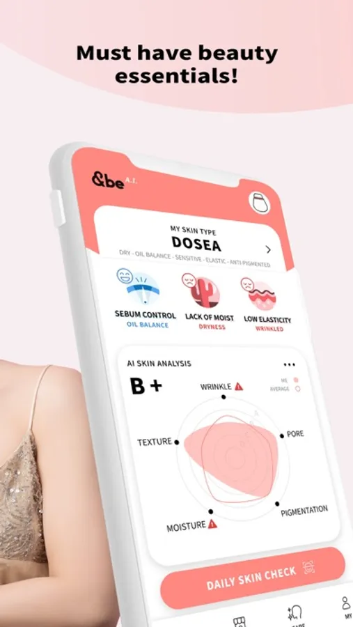 Moisture, Oily, Resistancy, Elastic, Anti-pigment 총 5가지 분야에서 내 상태를 알려줍니다.
