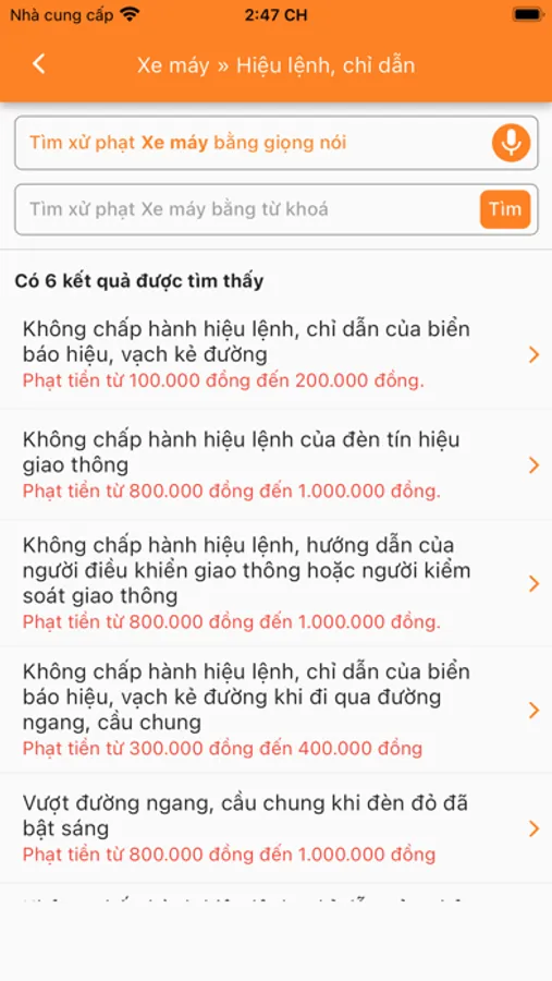 Tính năng tra cứu xử phạt giao thông bằng giọng nói hoặc từ khóa