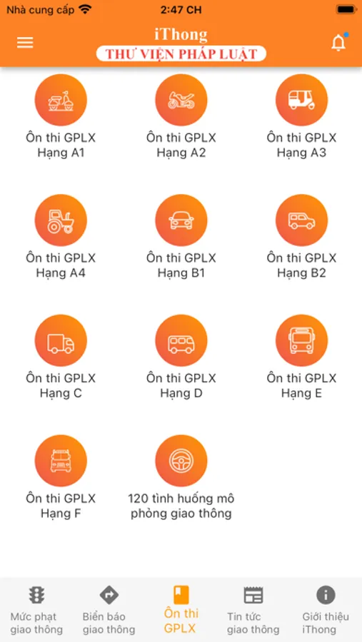 Tính năng ôn thi Giấy phép lái xe (GPLX)