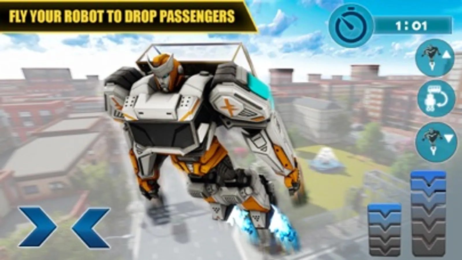 - Robot combos, flying robot car and special machine guns