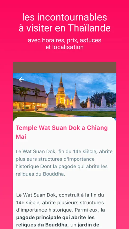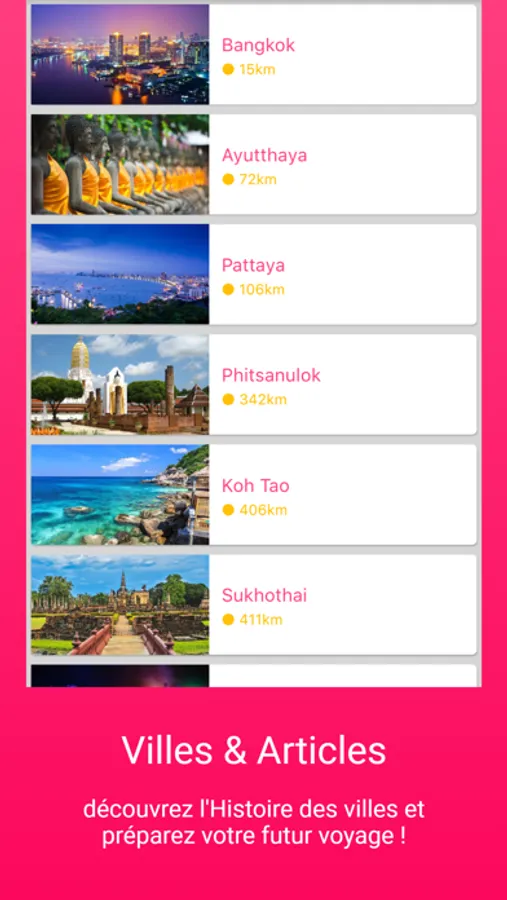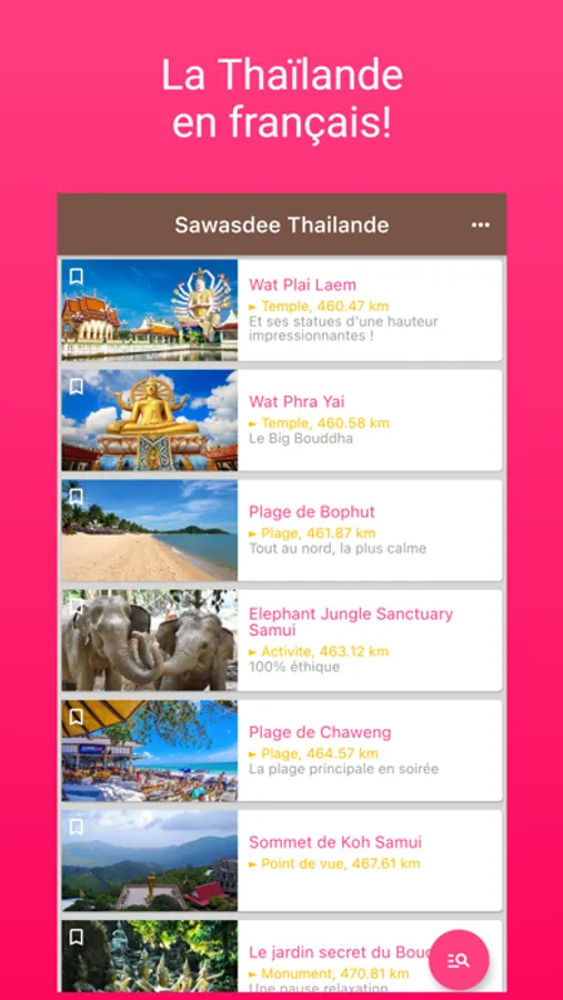 Les principaux lieux à visiter sont géolocalisés et apparaissent donc en fonction de la distance.