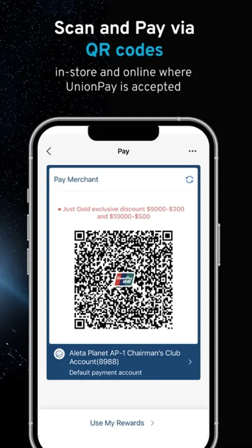 Enjoy the convenience of paying through your virtual card in store (with QR) and online, including e-commerce sites that accept UnionPay.