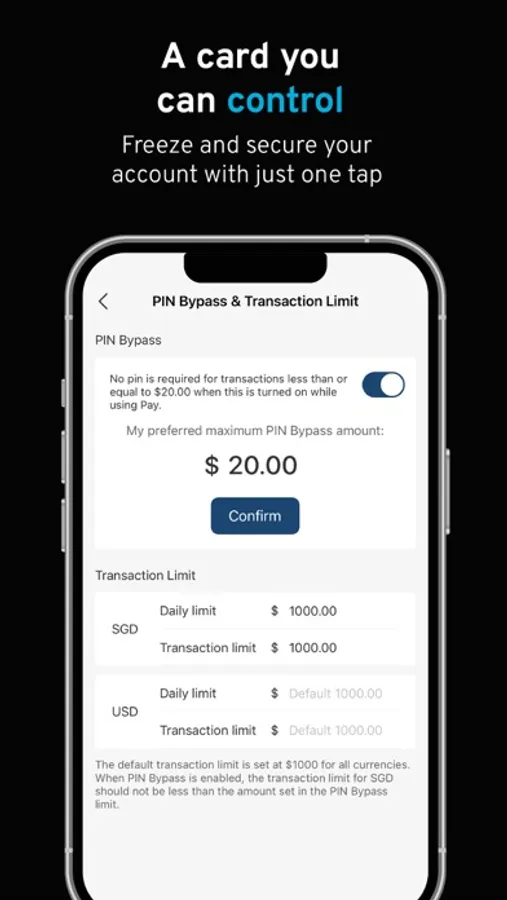 If you suspect that your personal information or card information has been compromised, you can easily lock your virtual card through the AP-1 app.