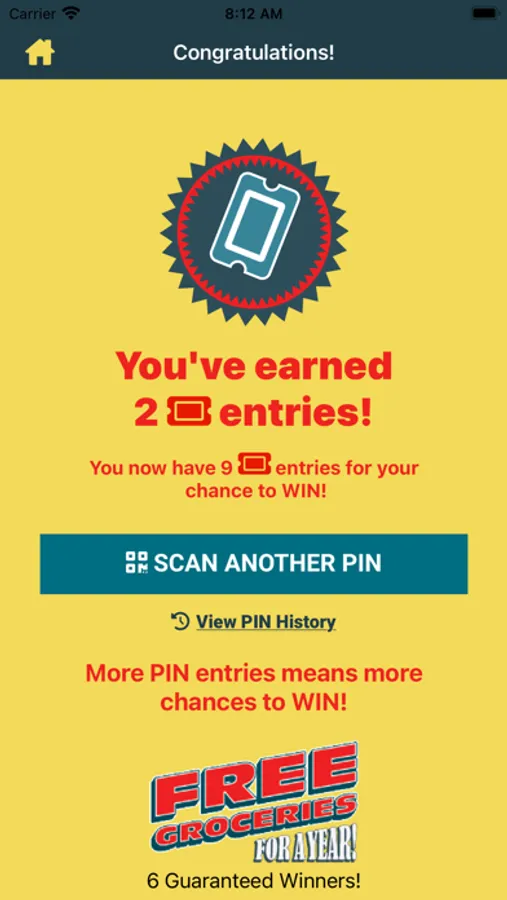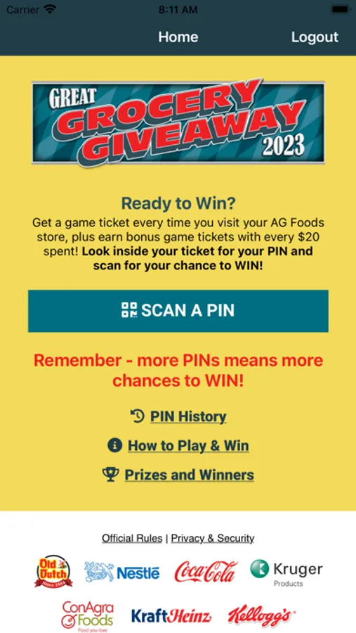 Download the app and signup. Then scan your PINs to receive ballot entries for your chance to WIN $50 Grocery Gift Certificates, 50 Second Shopping Sprees or Free Groceries for a Year!