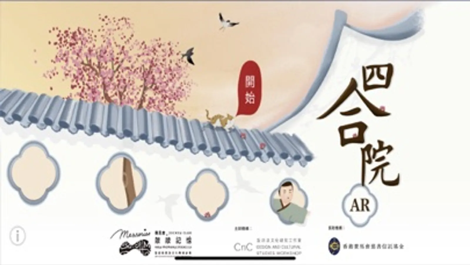 四合院AR是由香港賽馬會慈善信託基金捐助,設計及文化研究工作室主辦的「賽馬會『敲敲記憶』藝術科技及文化教育計劃」開發的互動應用程式,期望透過擴增實境(AR)技術讓公衆以輕鬆有趣的方式,認識傳統中國建築文化中,家庭和自然之間的共生、共處和共鳴,思考現今的生活空間。