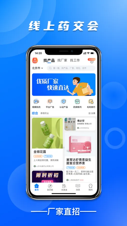 药品,器械 找产品,招代理,找工作,拓人脉!