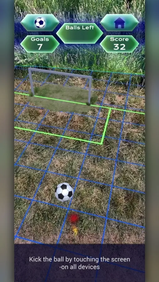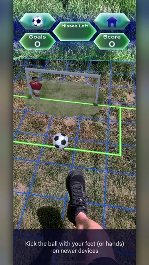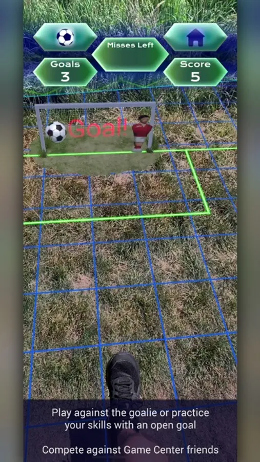 Start by scanning a safe play area free from obstacle to form a pitch, then drop the goal in the perfect spot to maximise your score by allowing you to move around and take shots from a greater distance.