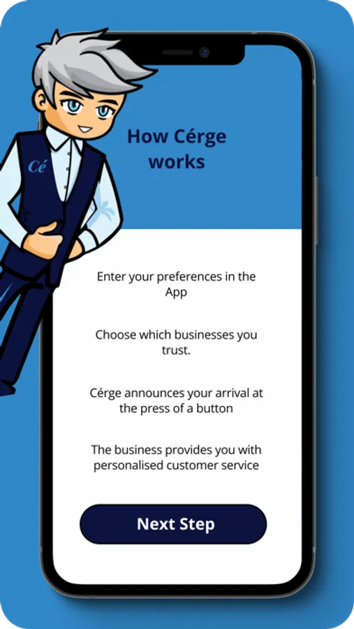 Cérge is an app for people with disability to control with who, where and when you share your customer service preferences in exchange for personalised customer service.