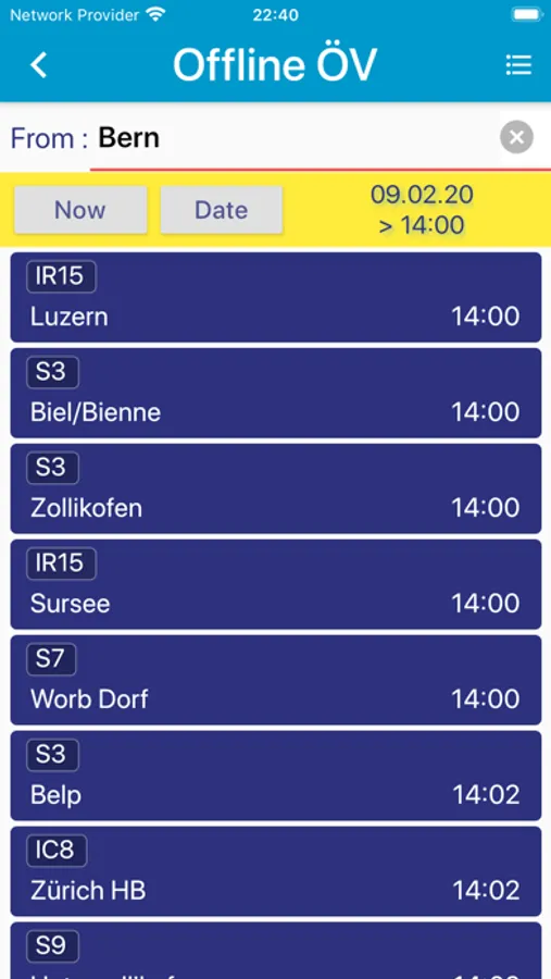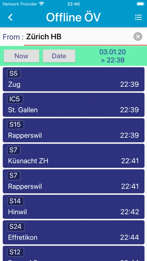 However, it is not possible with this app to display a "connection from A to B" (i.e. use the online offers of SBB or other transport companies in Switzerland). For connections from A to B the computing capacity in offline mode is unfortunately not sufficient).