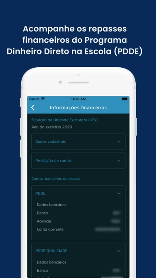 - Acessar as informações financeiras da escola como o recurso recebido e o saldo do PDDE, que é um Programa do MEC que repassa recursos financeiros diretamente para as escolas públicas;