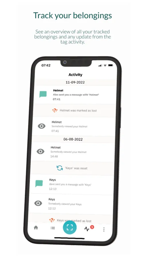 Then when you loose it and somebody scans the tag, you will be instantly notified on your phone, and able to receive the information to get it back safely.
