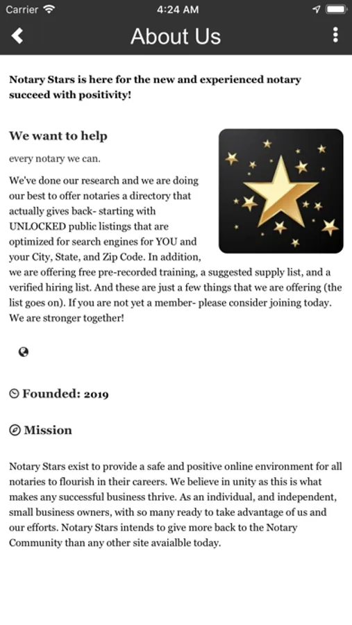 Notary Stars offers over 150+ hours of additional training for Notaries Public and Loan Signing Agents. Our applications puts the power of Notary Stars in the palm of your hand including access to our Member's Only Training Courses, hiring list, important community news, and more valuable resources. We are working hard daily to improve the Notary Community Nationwide and want you to be a part of it!