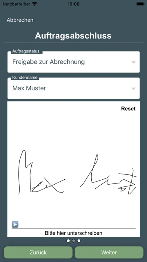 • Auftragsabschluss inkl. Unterschrift