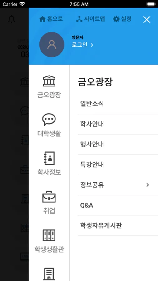 2. 금오광장 : 일반소식, 학사안내, 행사안내, 특강안내, 정보공유, Q&A, 학생자유게시판 등