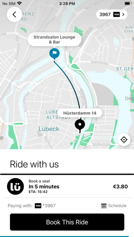 Order and pay for lümo conveniently in the app by SEPA, credit card or PayPal. The fare is based on the SH tariff plus a comfort surcharge of 1 euro per passenger. Passengers with a valid ticket (e.g. monthly ticket or semester ticket) only pay the comfort surcharge.