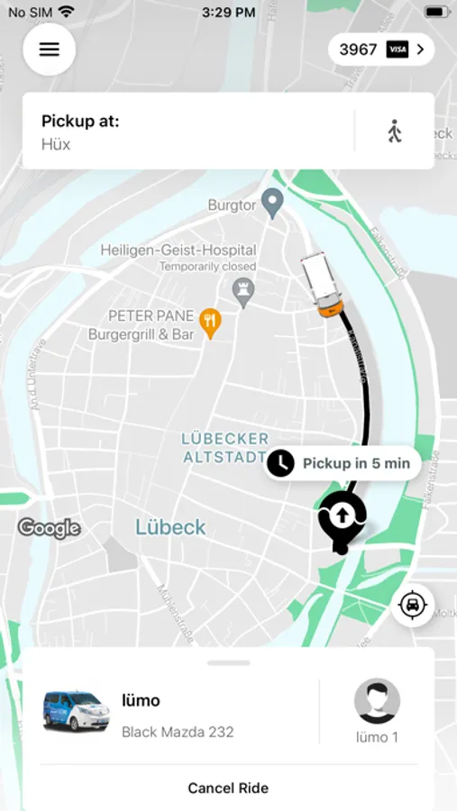 4) Be picked up by lümo and taken to your destination (follow the arrival of lümo in the app)