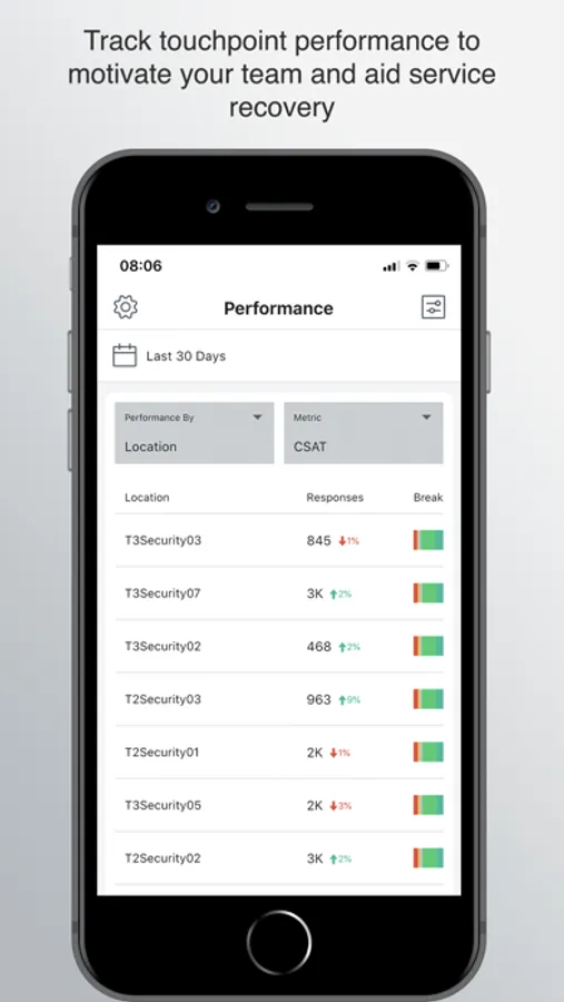 Receive real-time push notifications (alerts) when service levels dip. For example, when employee morale drops in the workplace, or when there is an issue resolving a customer complaint, or attention to cleanliness is needed in a washroom.