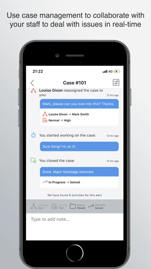 Communicate with your team and easily prioritise and assign tickets to relevant staff members based on alerts, with our built in case management system. Increase individual accountability and resolve issues with a proper paper trail.