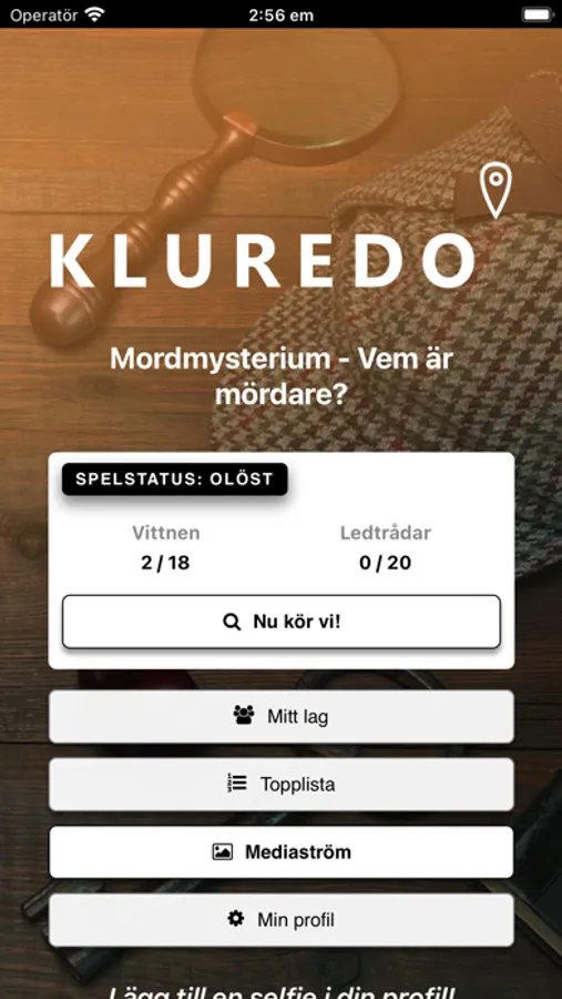 Kluredo. Ett Mordmysterium där ni i lag med detektiver ska ta er runt och förhöra virtuella vittnen och eliminera misstänkta. På vägen hittar ni mordvapen och vilka som kan ha gjort det. Har ditt team vad som krävs för att knäcka fallet!