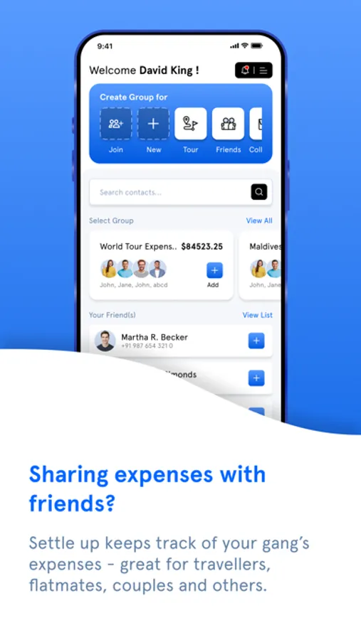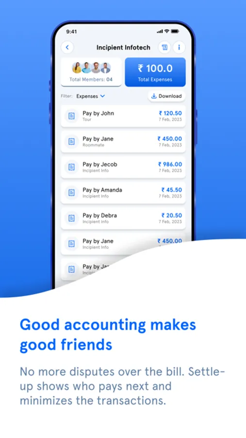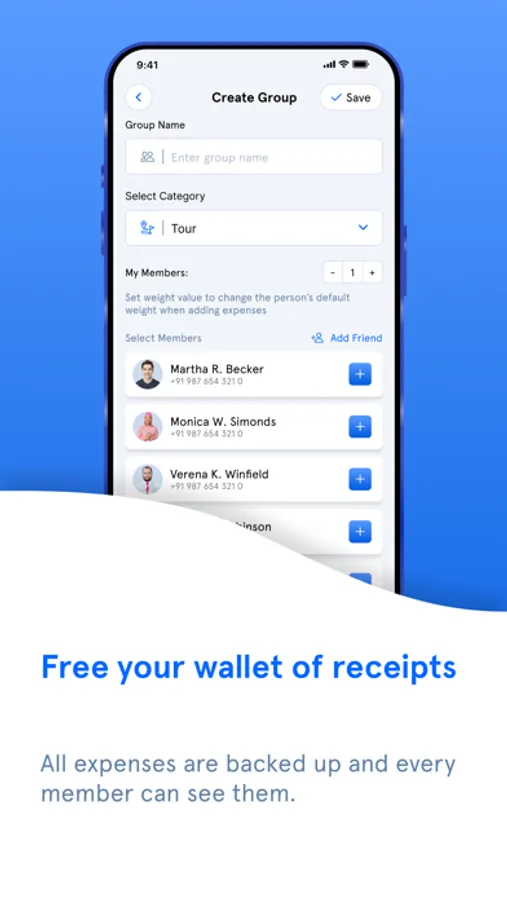 Dividing expenses/bills with friends? Simply create a group and add members. Add expenses and free yourself from managing too many receipts. Track balances at any time. Know whom you need to pay or take and how much without any calculations.