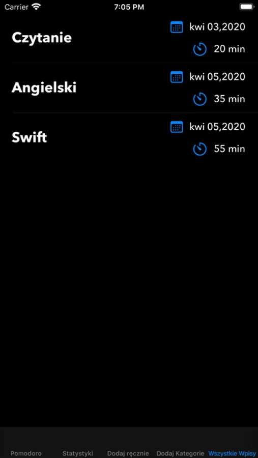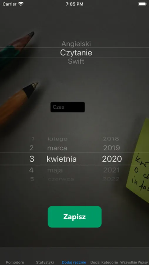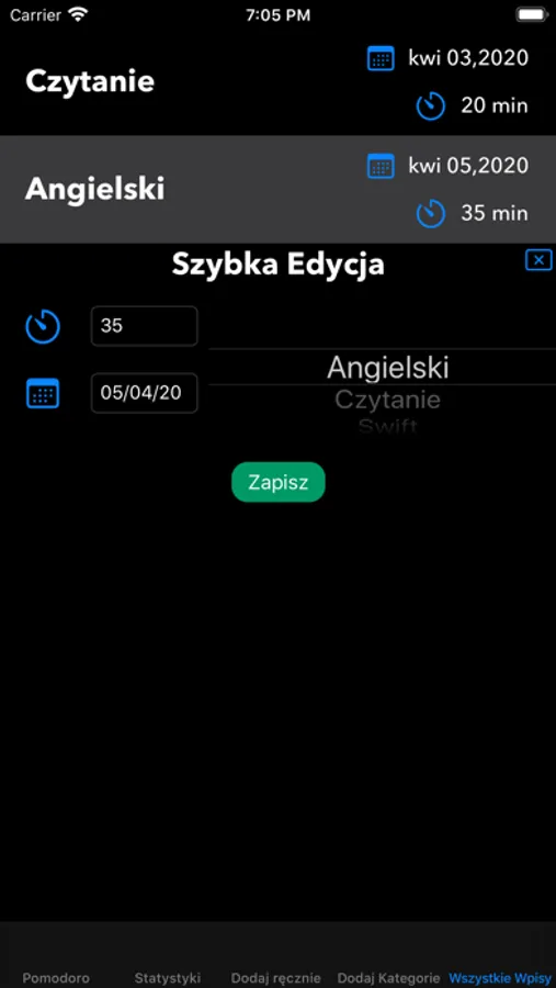 - Jeśli zapomniałeś(aś) uruchomić pomodoro, możesz ręcznie wprowadzić sesję pracy, pod warunkiem, że ma ona datę wcześniejszą.