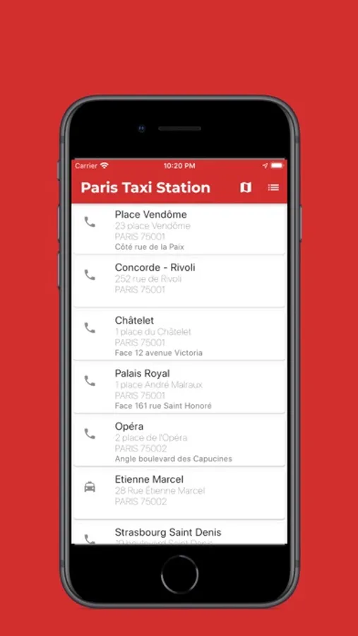 With a single click, you can display the telephone number of the taxi station and order a taxi corresponding to the call terminal you have selected.