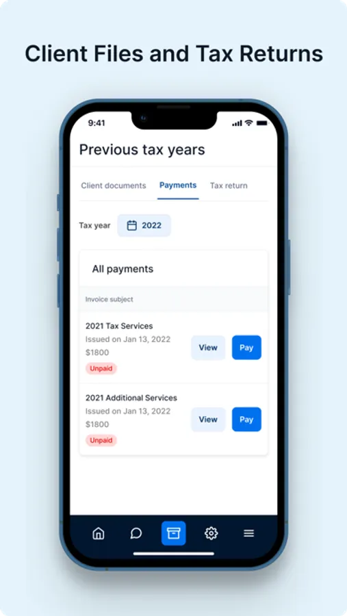 - Tax Document Archive: Easily access previously uploaded tax documents including copies of your tax returns from anywhere.
