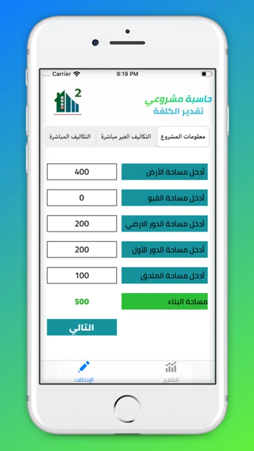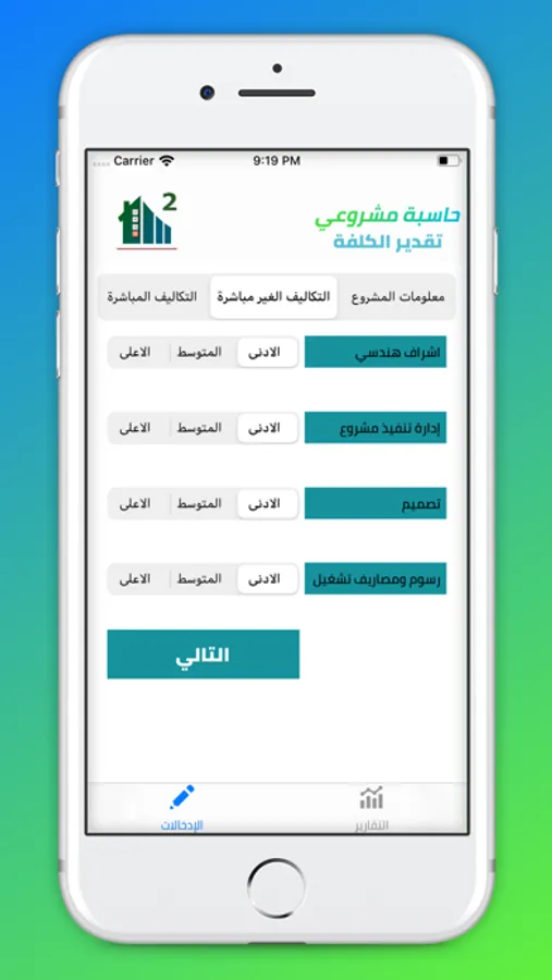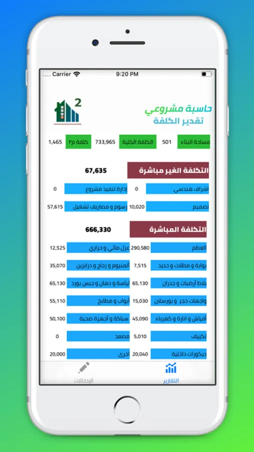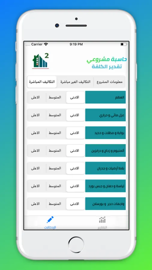 تطبيق يفيد في عمل ميزانية أولية للوحدة السكنية في السعودية ( لنموذج فيلا فقط ) قبل البدء بالبناء و خلال مرحلة التصميم ليتمكن المستخدم من تجنب مفاجأت بالكلفة و تكون الكلفة فيه بناء على معلومات تتعلق بالمساحات و نطاق العمل و الجودة المطلوبة ضمن ثلاثة خيارات ( حد ادنى للكلفة - حد متوسط للكلفة - حد اعلى للكلفة )