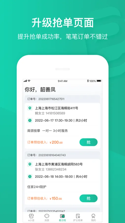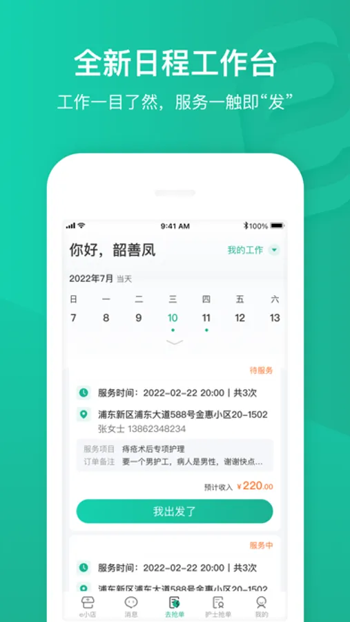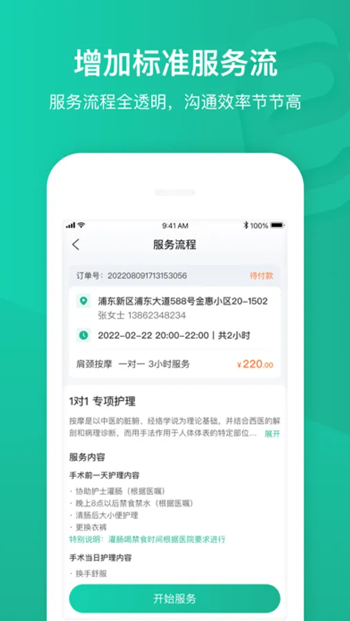 护士服务,项目包括:上门打针换药、导尿、造口护理、PICC导管维护、术后拆线等基础护理项目;新生儿护理及产后等母婴护理服务;陪诊陪检服务、心血管功能等