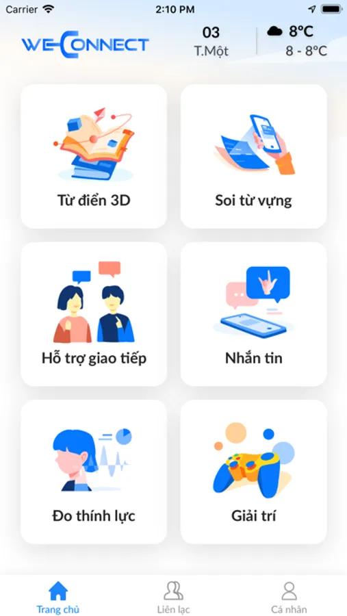 WeConnect là ứng dụng hỗ trợ người khiếm thính giao tiếp trong công việc và cuộc sống hàng ngày. Đồng thời, đây cũng là công cụ học tập cho bất cứ ai có nhu cầu học từ vựng ngôn ngữ ký hiệu (NNKH). Người dùng được cung cấp các chức năng: