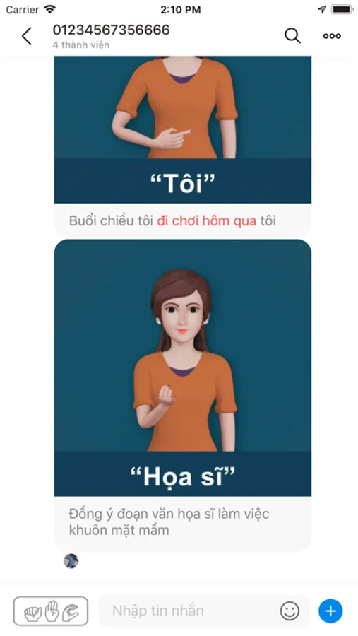 - Nhắn tin với ảnh động mô tả theo NNKH