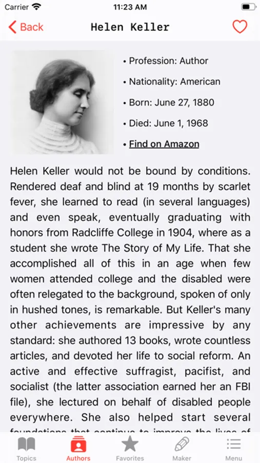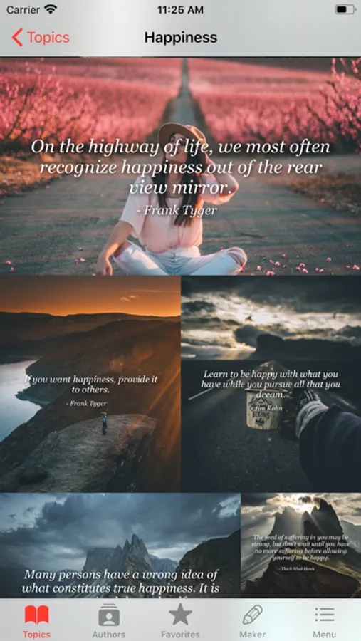 Over 1200 selected quotes with more than 90 topics and 130 famous authors around the world.