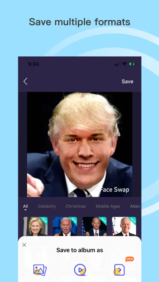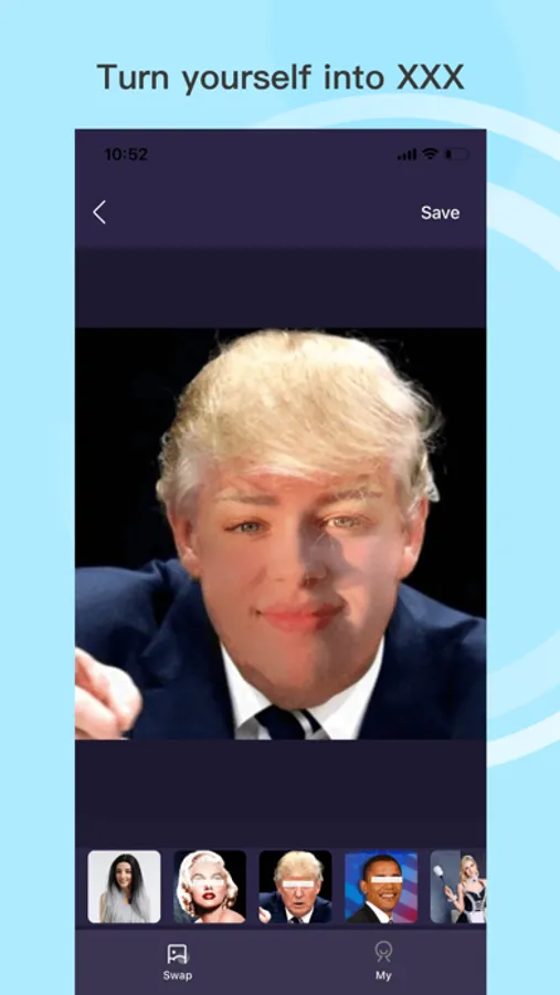 * Replace your face with anyone you want.