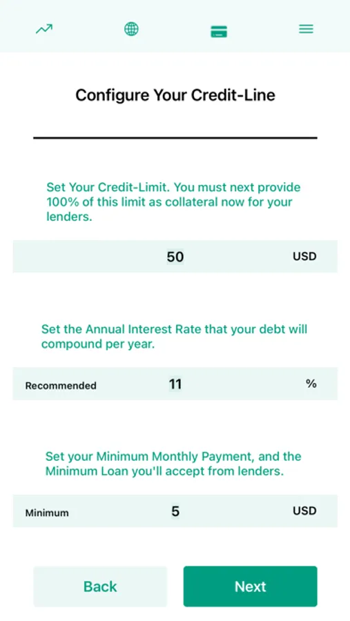 At the point of final withdrawal of funds from the smart contract into the borrower's virtual wallet, the withdrawn funds are officially 'borrowed' and begin to accrue the interest at the rate designated by the borrower at the smart contract's creation. The borrower is now to repay these funds, and a lack of doing so results in poor statistics on the platform, depleted credibility, and negative reviews from your lenders. In addition, lenders may reclaim the remaining liquid portions of their contributions which have not yet been withdrawn, at will.