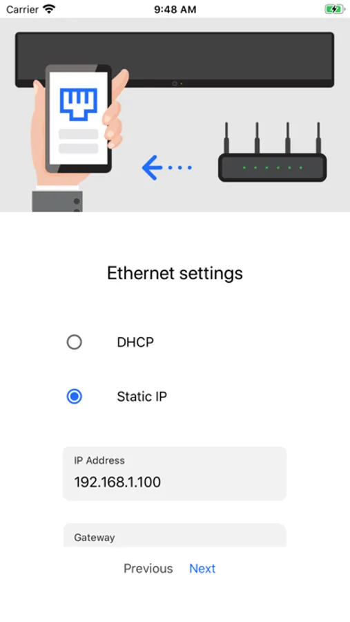 Using D230 Tool on your iOS device, you can setup network configuration of D230 device to enable D230 device connect to intranet or internet. Furthermore, you can assign server address of D230 device to enable D230 device connect to server to sync contents of digital signage.