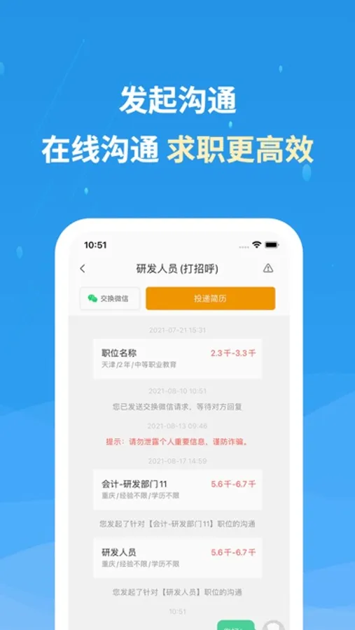 【企业来信】企业人事经理发送面试、入职等消息第一时间推送给您;