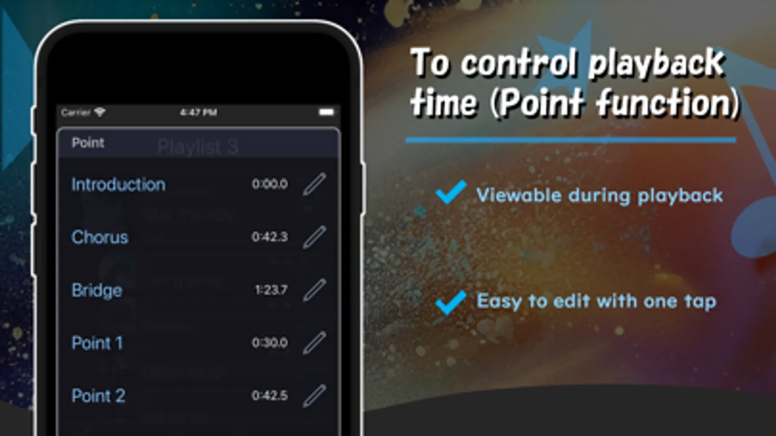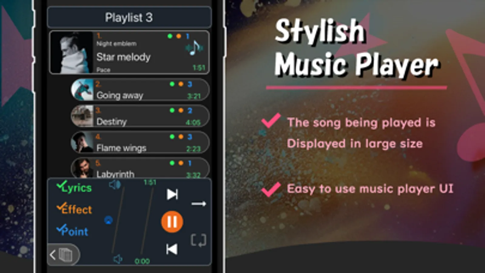 You can use easy-to-understand basic operation buttons, specify the audio output destination using AirPlay, manage lyrics, effects, and point functions.
