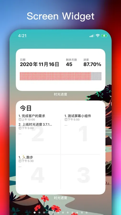 - Special feature: annual progress, you can see how much the year has passed, you can click on the annual progress area to enter the "working calendar"